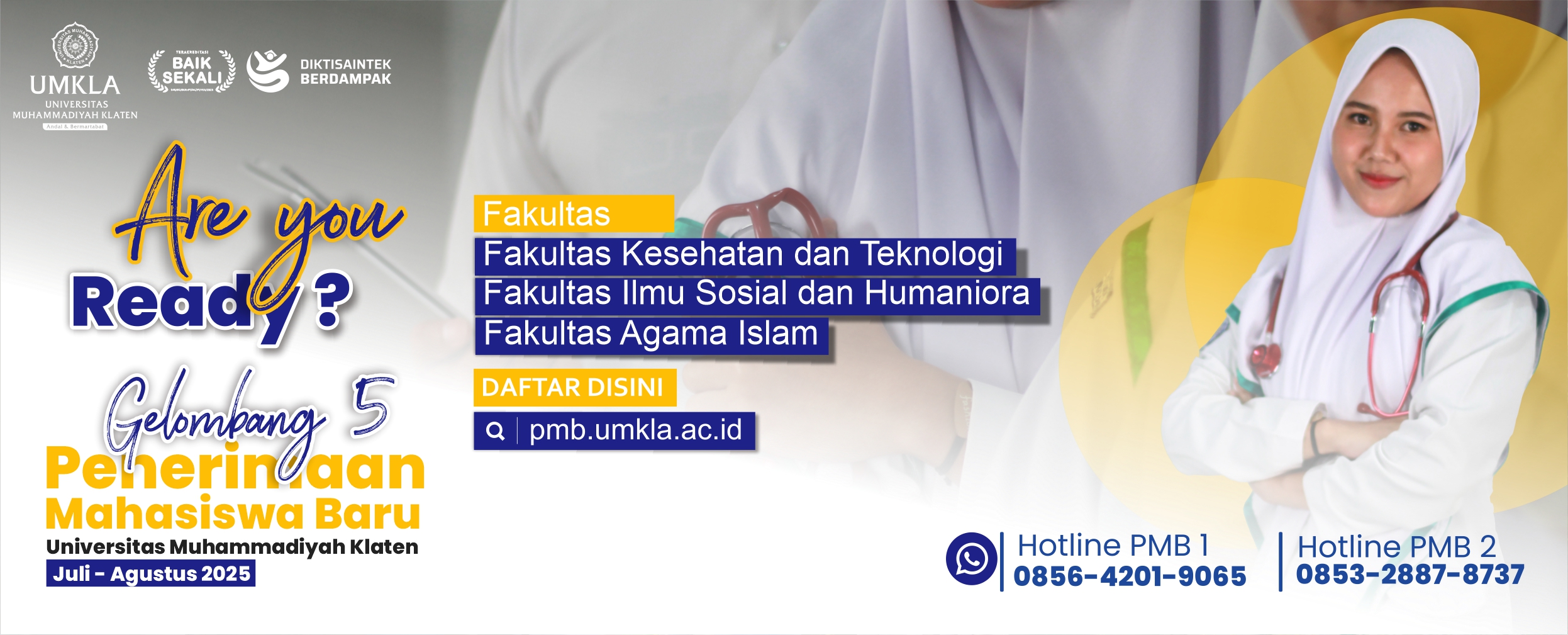 Universitas Muhammadiyah Klaten memiliki beragam pilihan program studi yang tentunya memberi kesempatan yang lebih luas untuk studi lanjut sesuai dengan peminatan calon mahasiswa