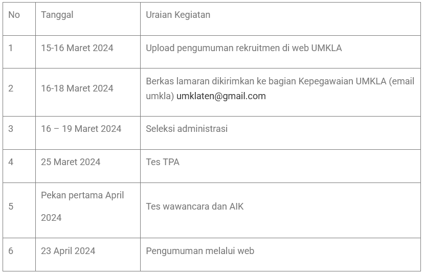 PERSYARATAN UMUM PENERIMAAN TENAGA KEPENDIDIKAN UNIVERSITAS MUHAMMADIYAH KLATEN