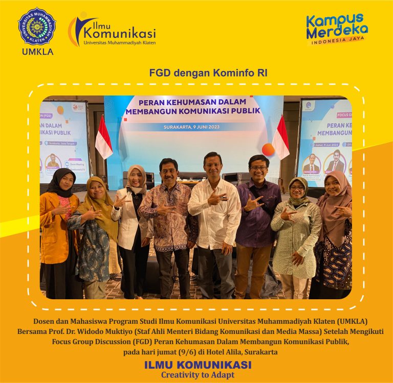 Program Studi Ilmu Komunikasi Universitas Muhammadiyah Klaten (UMKLA), menghadiri Fokus Group Discussion (FGD) Peran Kehumasan dalam Membangun Komunikasi Publik, pada jumat (9/6) di Hotel Alila,[…]